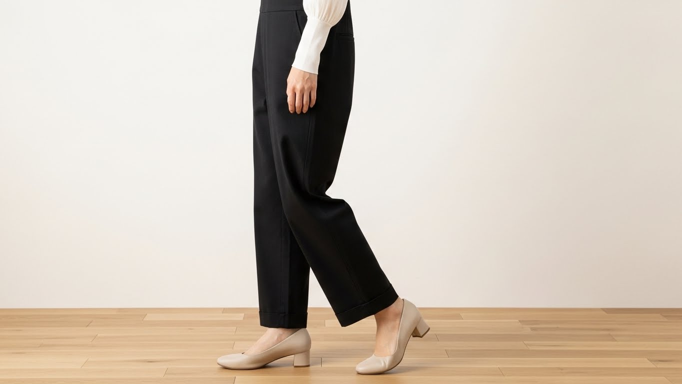 縦長効果を出したいなら、5cm程度のヒールがある靴がおすすめ。