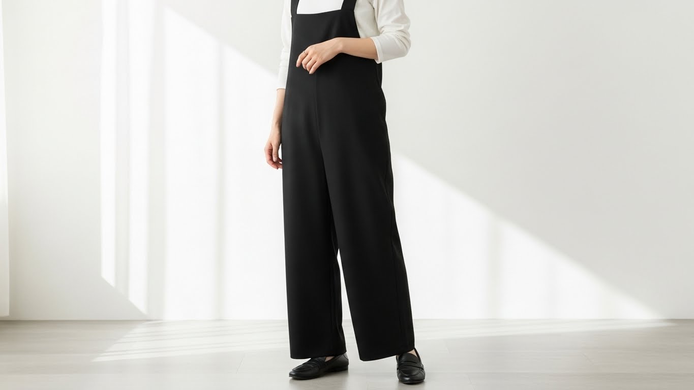 体型カバーもできて、通勤から休日まで幅広く活躍するサロペット。