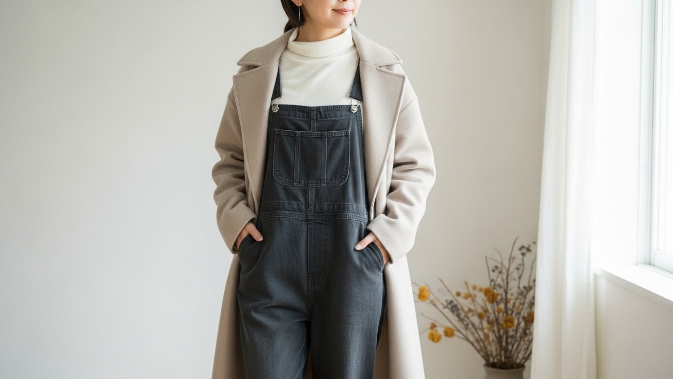 冬のサロペットは、素材選びとシルエットを意識すれば、30代40代でもおしゃれに着こなせるアイテムです。