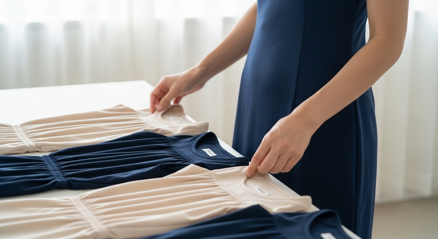 体のラインを拾いすぎない生地を見分けるには、実際に触ってみることが大切です。