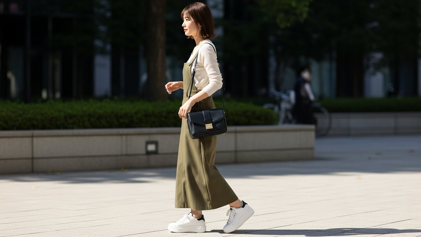 実はサロペットスカート、コーディネートの幅が広くて使いやすいアイテムなんです!トップスを変えるだけで印象がガラッと変わるので、おしゃれ初心者さんにもおすすめですよ♪