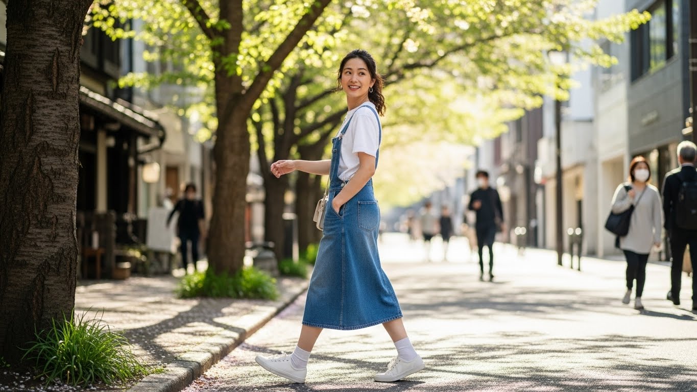 ベーシックなサロペットスカートなら、小物で遊び心をプラスするのも楽しいですよ♪差し色になるバッグを持ったり、帽子でアクセントを加えたり...自分なりのアレンジを見つけてみてください。