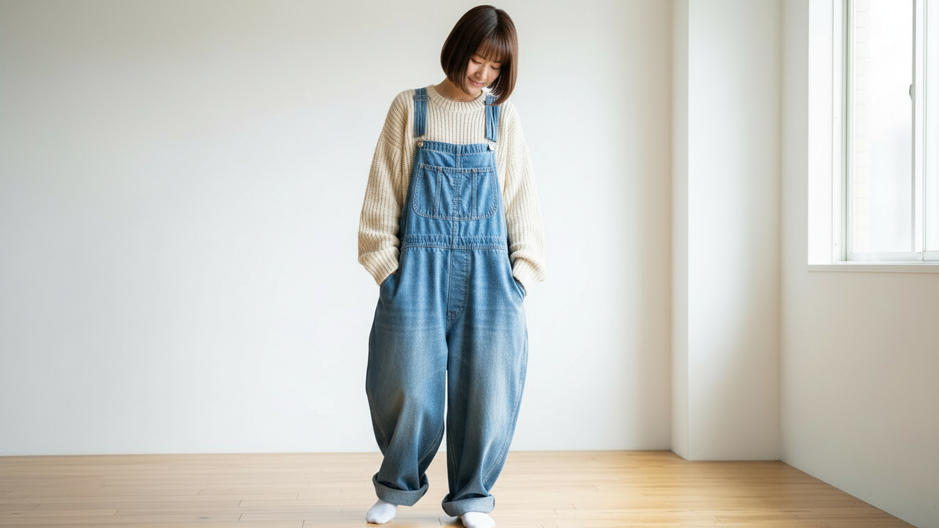 ゆったりサロペットは楽ですが、大きすぎると野暮ったい印象に。